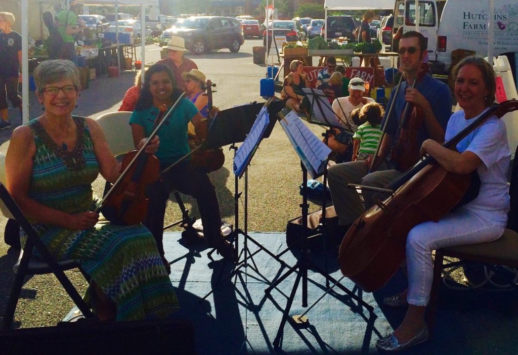 The Mystic Quartet, an Arlington-based quartet, performs seasonally at the Belmont Farmers Market, and the Concord Winter Market. They will be debuting at the Arlington Public Library in January as part of the Friends’ Reading Room Music Series.